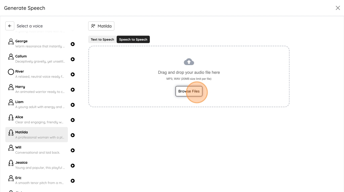 5. Click "Browse Files" and select your input audio file from your device or computer.