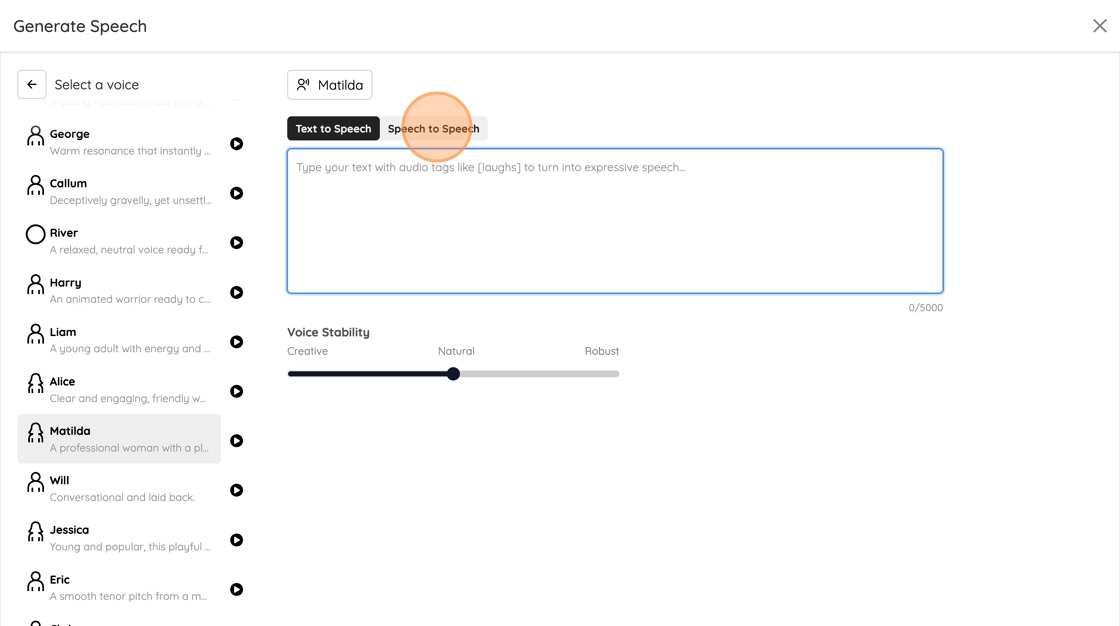 4. Click "Speech to Speech" tab to switch to "Speech to Speech" mode.