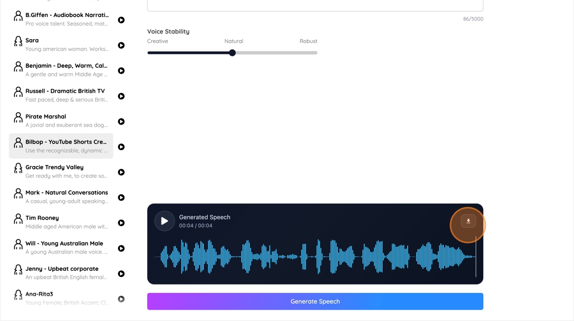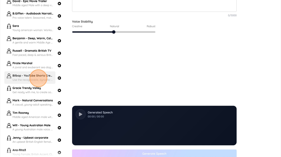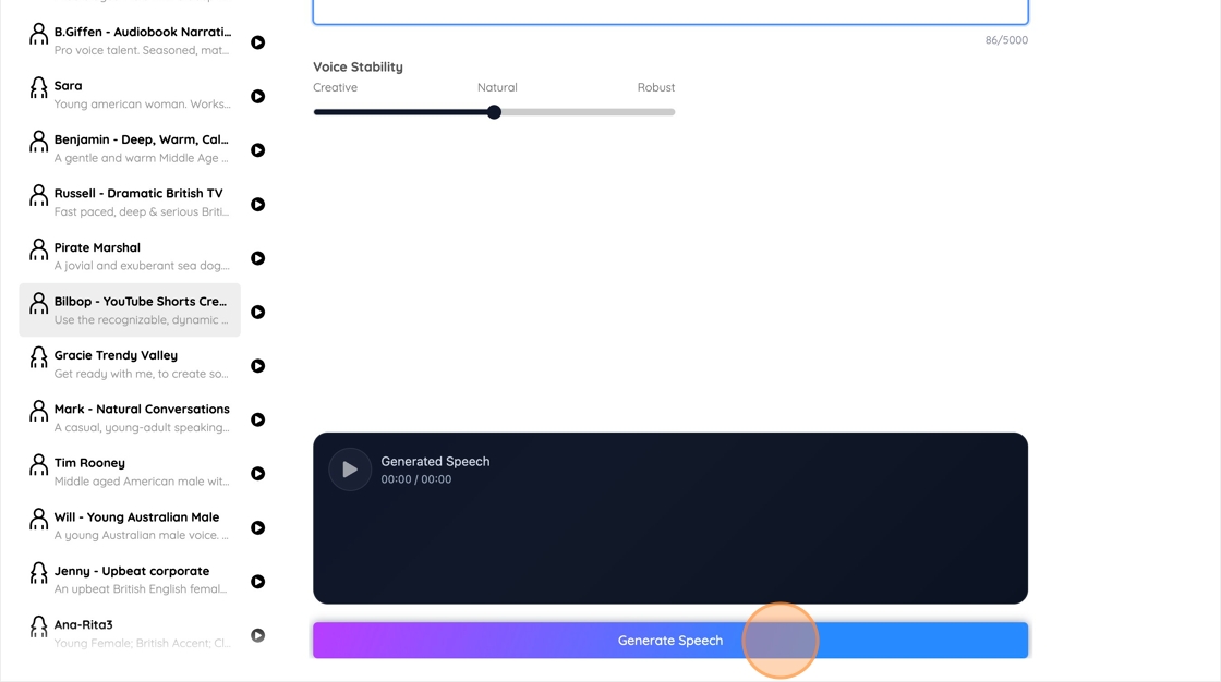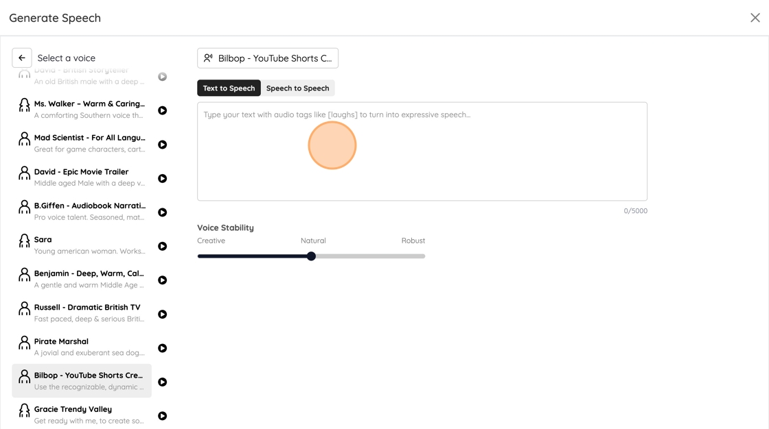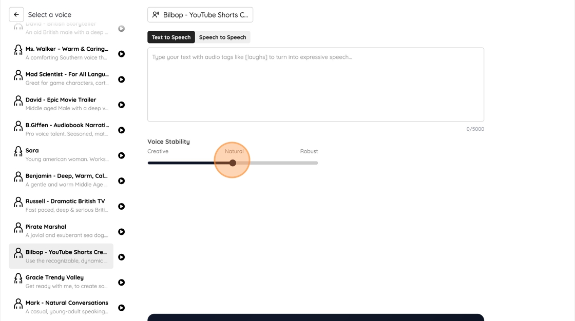 7. You can adjust the voice stability setting based on your needs — from Creative to Natural to Robust — depending on the desired tone and consistency.