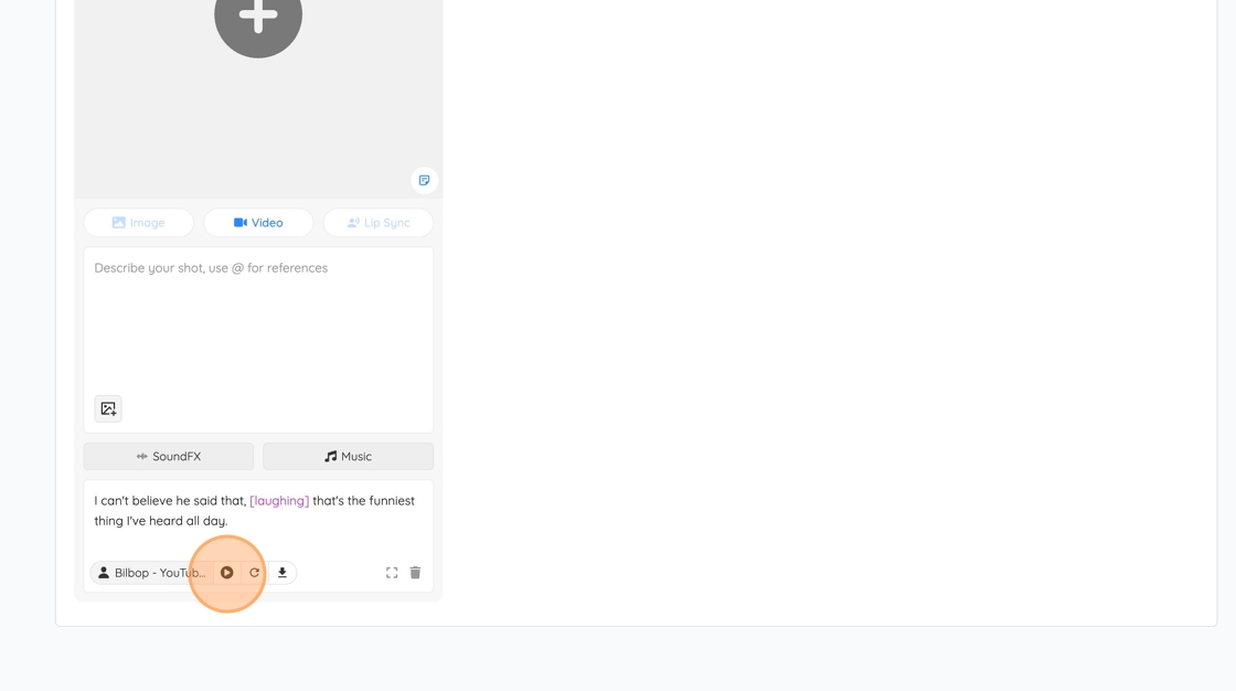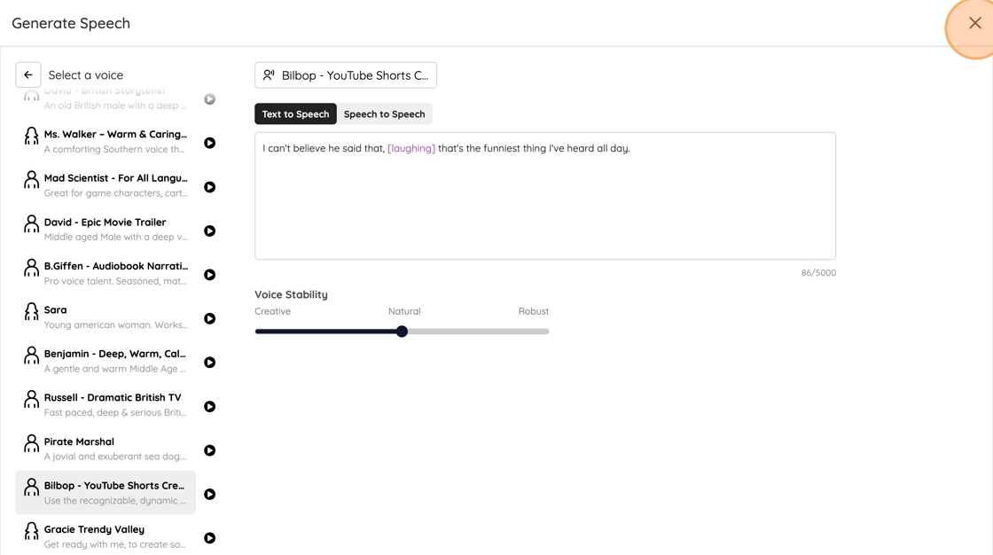 13. If you like the generated speech, you can simply click on the "X" button to close the modal. The latest generated speech will automatically be added to your shot inside your storyboard.