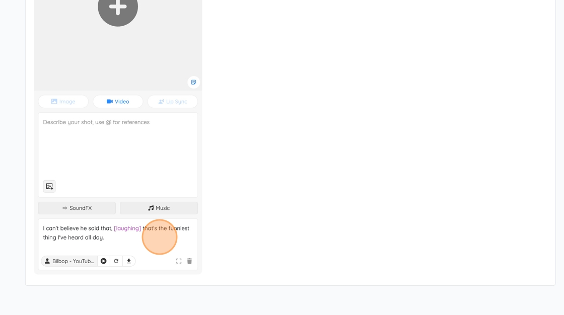 8. Click on the text box to start typing, use [brackets] for expressive speech.