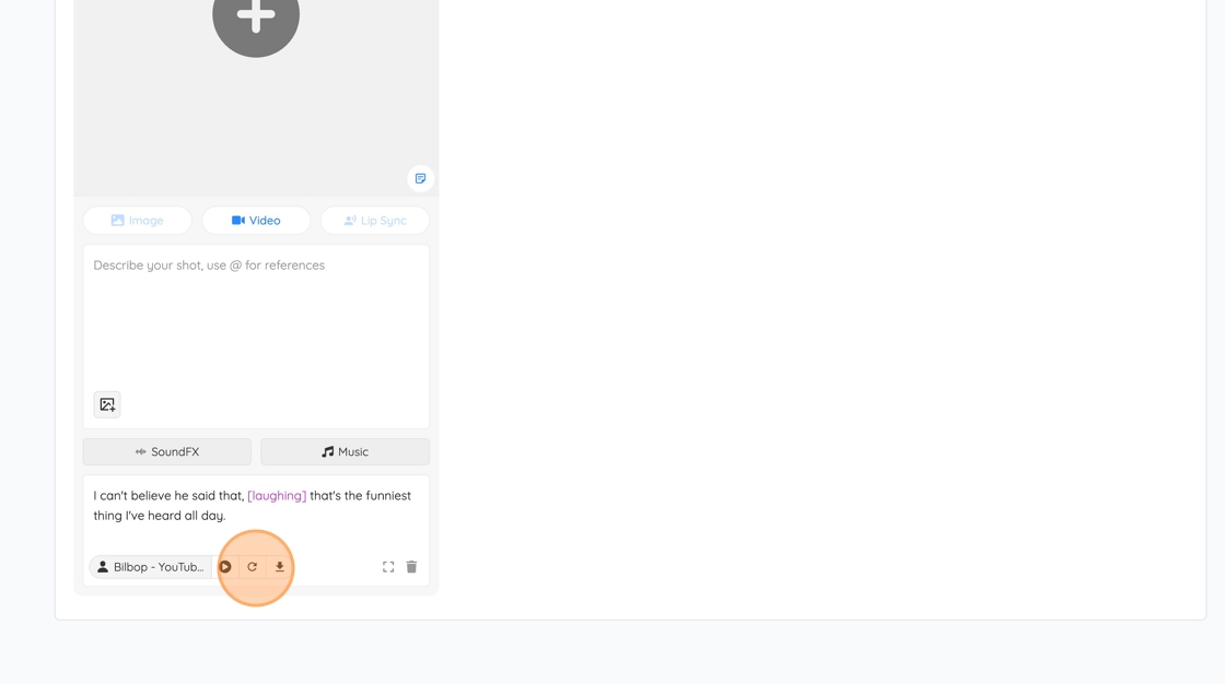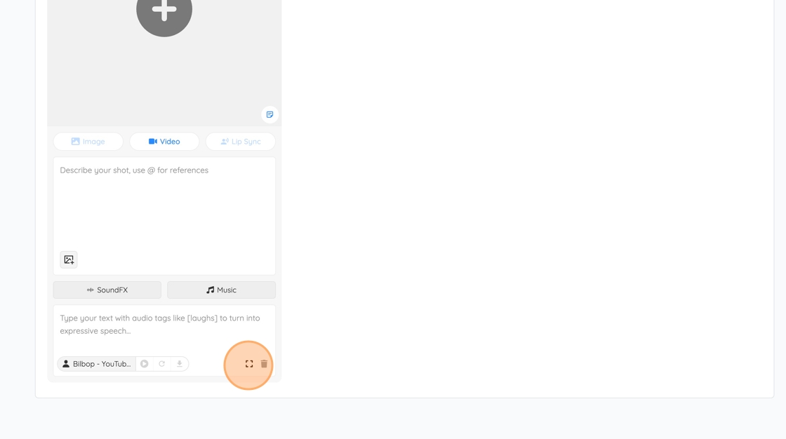 5. When you click, the modal will close, and the selected voice will be added to the speech menu for Shot 1. Then, click the square icon in the bottom-right corner to open an advanced menu with additional options.