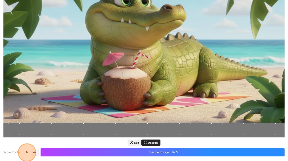 4. For this particular image, you have the option to upscale by 2 or 4. The scale factors for each image will vary, depending on the original image size.
