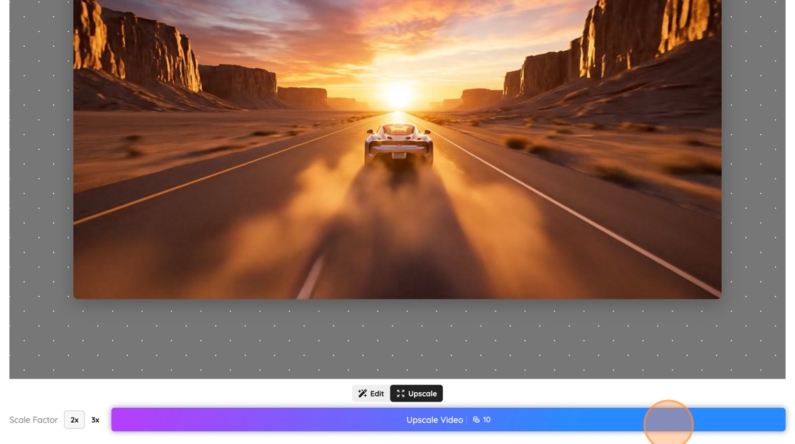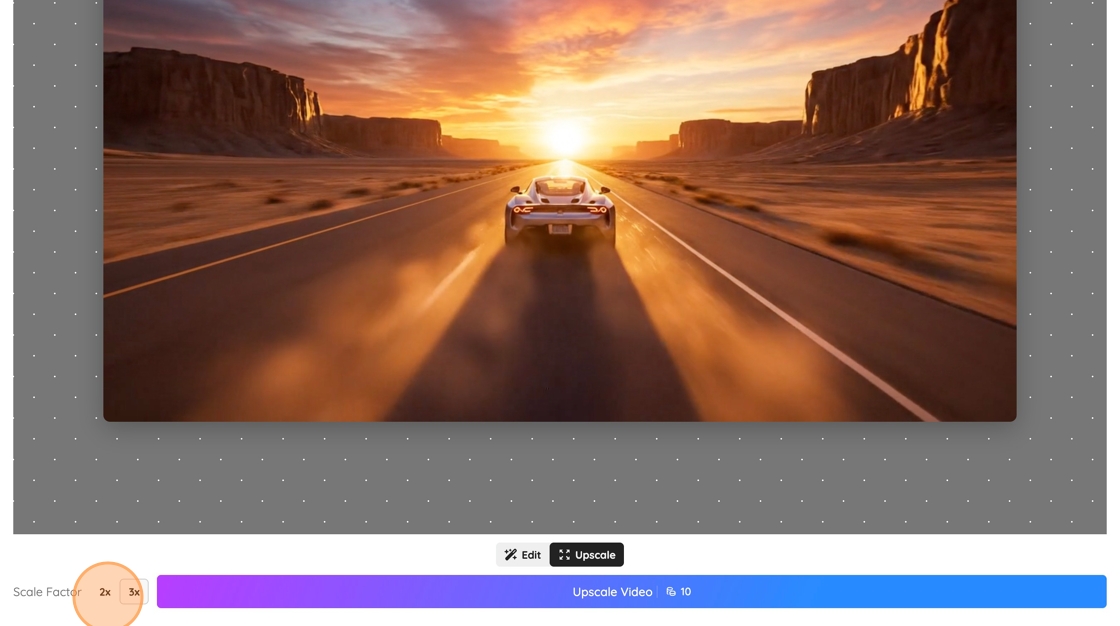 3. The edit video modal opens, where you can edit, upscale, or change out your video for another video or image.
